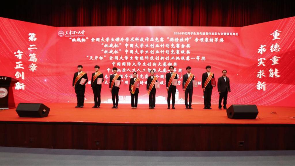校黨委副書記、校長練繼建為天津市人民政府獎(jiǎng)學(xué)金、天津市王克昌獎(jiǎng)學(xué)金、天津市海河自強(qiáng)獎(jiǎng)學(xué)金、天津市自信自強(qiáng)年度人物、天津市大學(xué)生年度人物提名獎(jiǎng)獲獎(jiǎng)代表頒獎(jiǎng)。