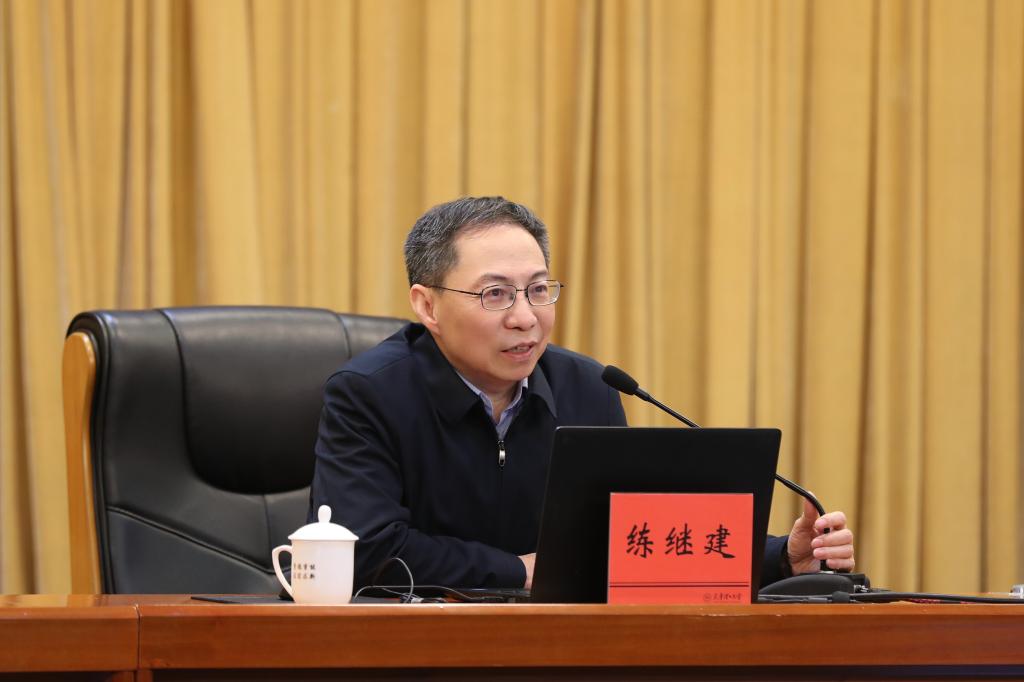 校黨委副書記、校長練繼建作《守正創(chuàng)新謀發(fā)展求實求新創(chuàng)佳績》專題報告。緊密結(jié)合學校實際,深入思考“教育強國,天理何為”這一重要命題,強調(diào)了解放思想、統(tǒng)一思想對于學校高質(zhì)量發(fā)展的關(guān)鍵意義,詳細解讀了實新行動“三大工程”,引導全體干部以新的姿態(tài)、新的氣象、新的作為加快推進我校高質(zhì)量發(fā)展。他強調(diào),2025年是科研躍升年,是本科教學審核評估引領(lǐng)教學質(zhì)量提升年,是AI賦能科教融匯開啟“七新”改革啟動年,更是創(chuàng)一流學科的謀劃年,鼓勵大家要充分發(fā)揮引領(lǐng)帶頭作用,秉持守正創(chuàng)新精神,引領(lǐng)廣大師生積極響應“厚基礎、重實踐、闖新路”的發(fā)展要求,全力營造“入主流,創(chuàng)一流”的良好工作局面。