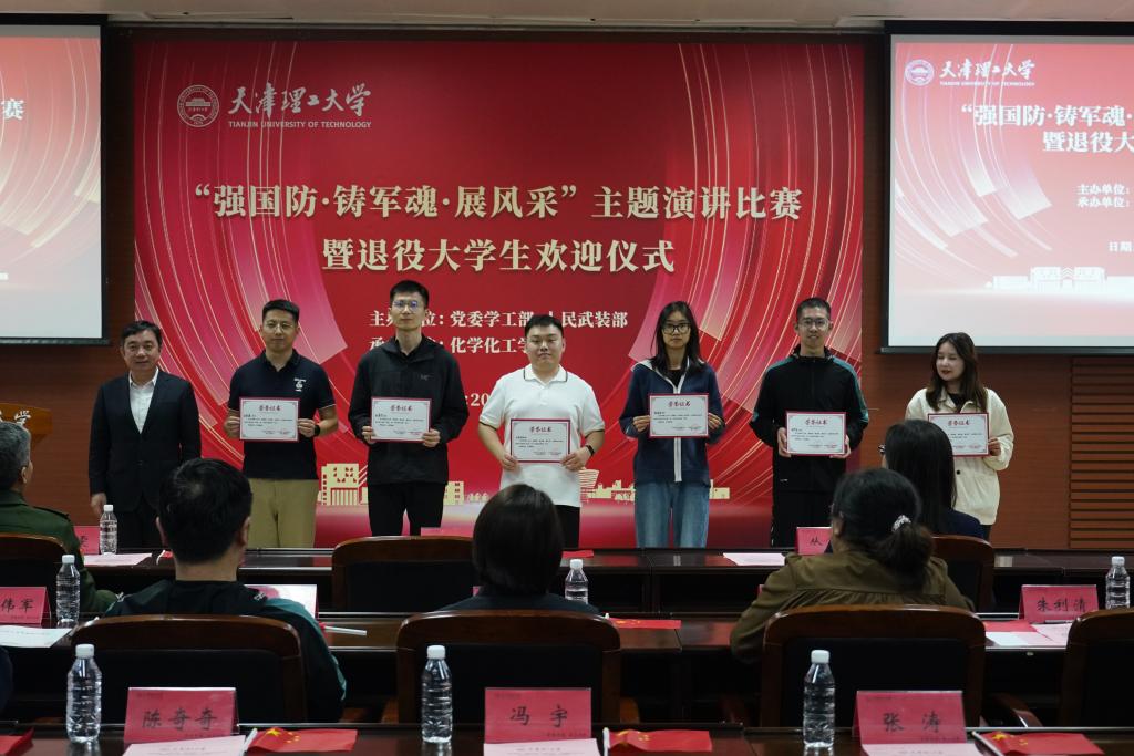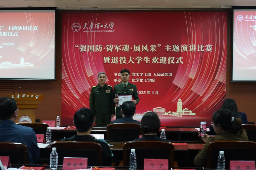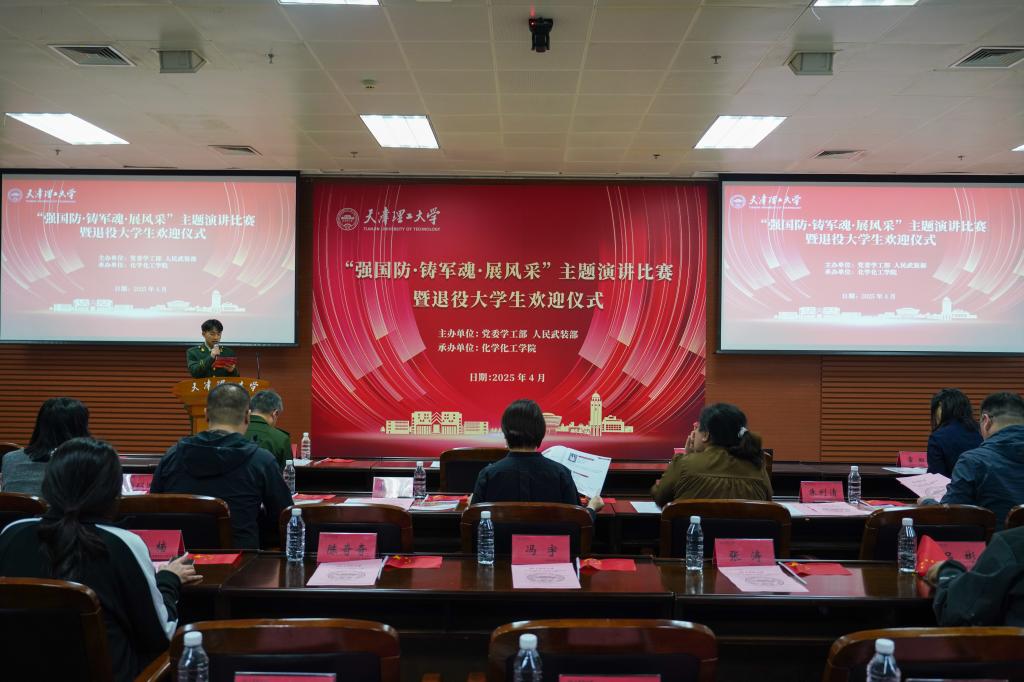 為深入學習貫徹習近平強軍思想,激發學生愛國熱情,4月23日,學校人民武裝部聯合化學化工學院在圖書館多功能廳舉辦“強國防·鑄軍魂·展風采”主題演講比賽暨退役大學生歡迎儀式。南開區人武部政委鄧雯,黨委常委、副校長葉寧出席活動。