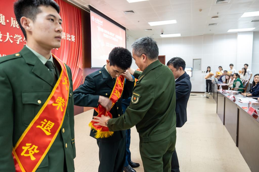 葉寧在講話中肯定了退役大學生軍旅生涯中作出的突出貢獻,對獲獎選手表示祝賀,并對全體師生提出“以青春之志筑牢國防根基”“以榜樣之力引領校園風尚”“以創新之策深化育人實效”三點希望。他強調,學校全面貫徹落實黨的二十大和二十屆二中、三中全會精神,胸懷“國之大者”,勇擔時代使命,進一步加強國防教育,培養更多德才兼備的國防后備人才,為實現建軍一百年奮斗目標貢獻力量。