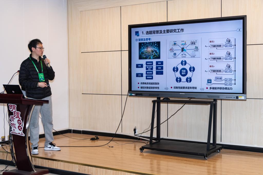 陶瓏作題為“直流微網功率變換器抗擾控制及協同運行”的報告。他探究功率變換器在不同運行工況下的擾動響應特性以及常規控制方法的缺陷,提出相應的控制方法以及多機并聯的協同運行策略,展現抗擾性能的優越性。