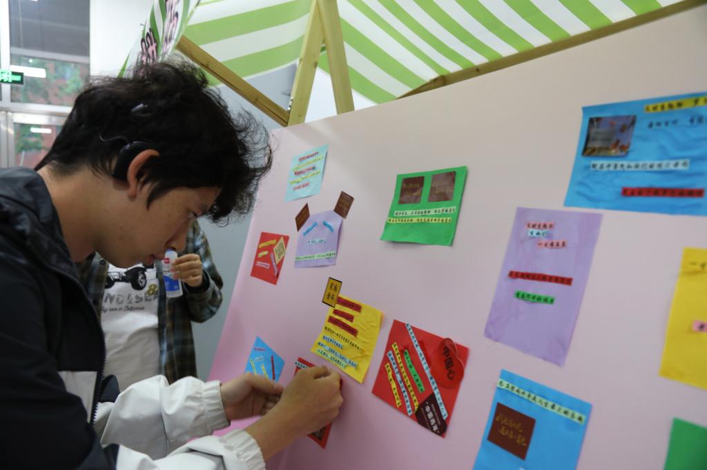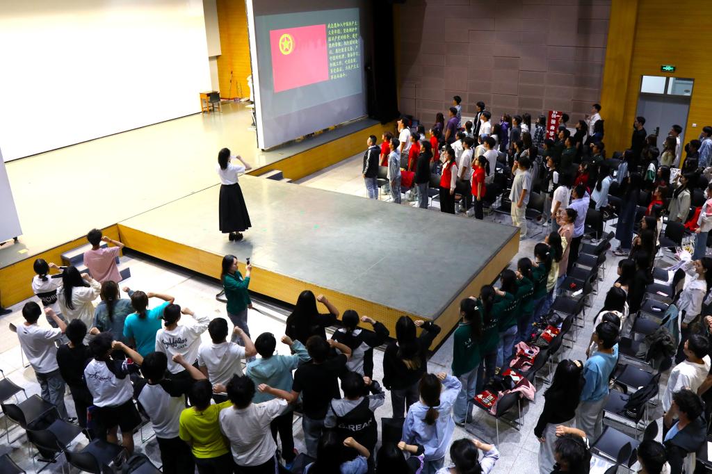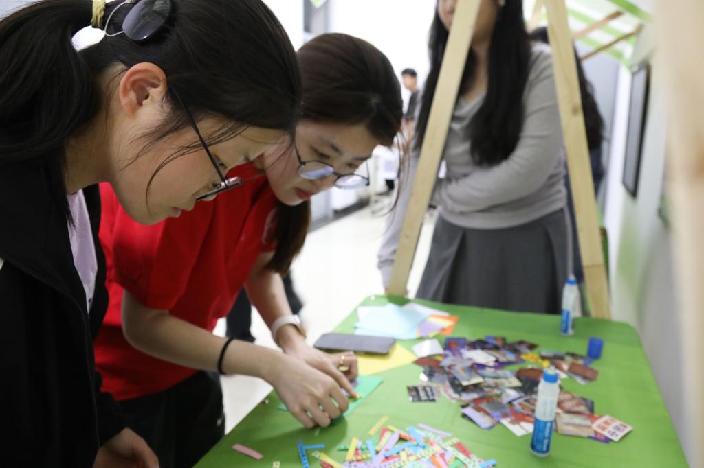青春與時代同向、與祖國同行。詩會開始前,同學們化身“文人墨客”,將詩詞拆解、拼貼,組成富有創意的詩句,表達了新時代青年對祖國的祝福。