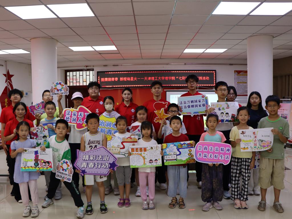 在天津市安華里社區、海逸長洲社區,實踐團采用“紅色+法治”的新模式為社區青少年帶來了一場別開生面的普法課堂。實踐團帶領青少年用畫筆一點點勾勒,把對法律的尊崇與敬畏化作一幅幅精美的海報,用動人歌詞傳遞赤子之心,詮釋新時代青年的家國情懷,共建文明社會。
