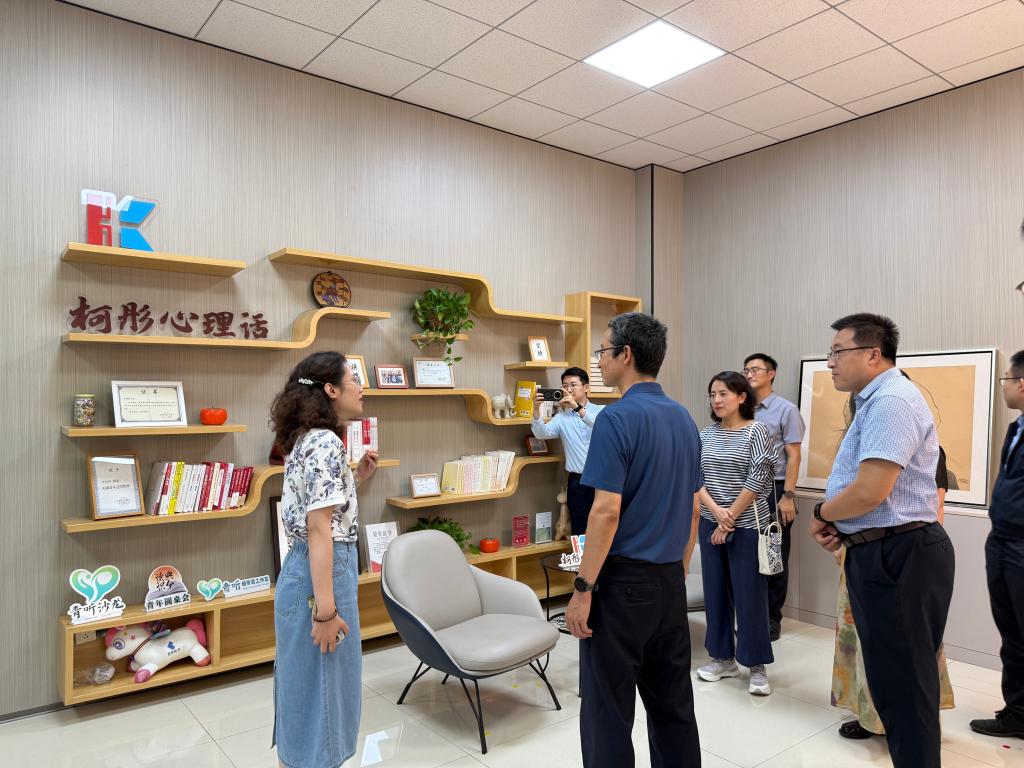 調研組先后來到我校“一站式”學生社區、網絡思政名師工作室、創新創業學院等地進行了實地考察。在明理家園“一站式”學生社區南苑綜合服務中心,調研組詳細觀摩了幸福文化體驗中心“一廊三室”育人空間,聽取了學校關于社區“領航鑄魂”“社區藍圖”“力量引育”“數字賦能”四項工程的思路匯報與具體做法,并就社區黨建、文化育人、智慧服務等方面與工作人員進行了深入交流。