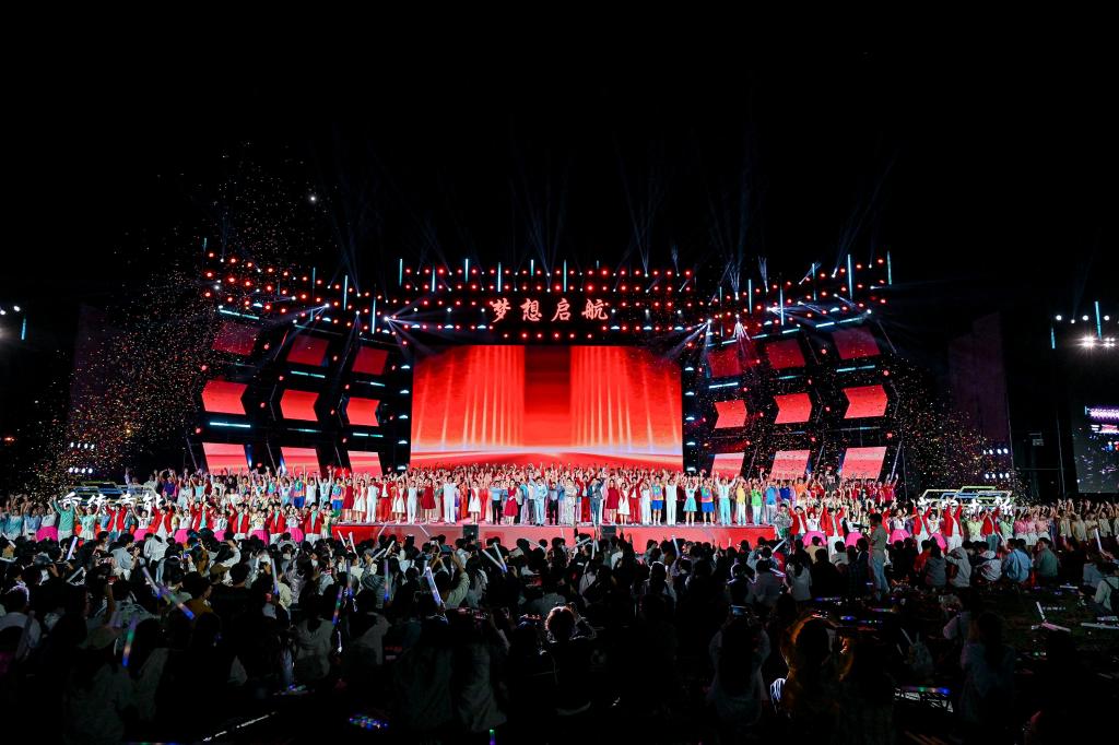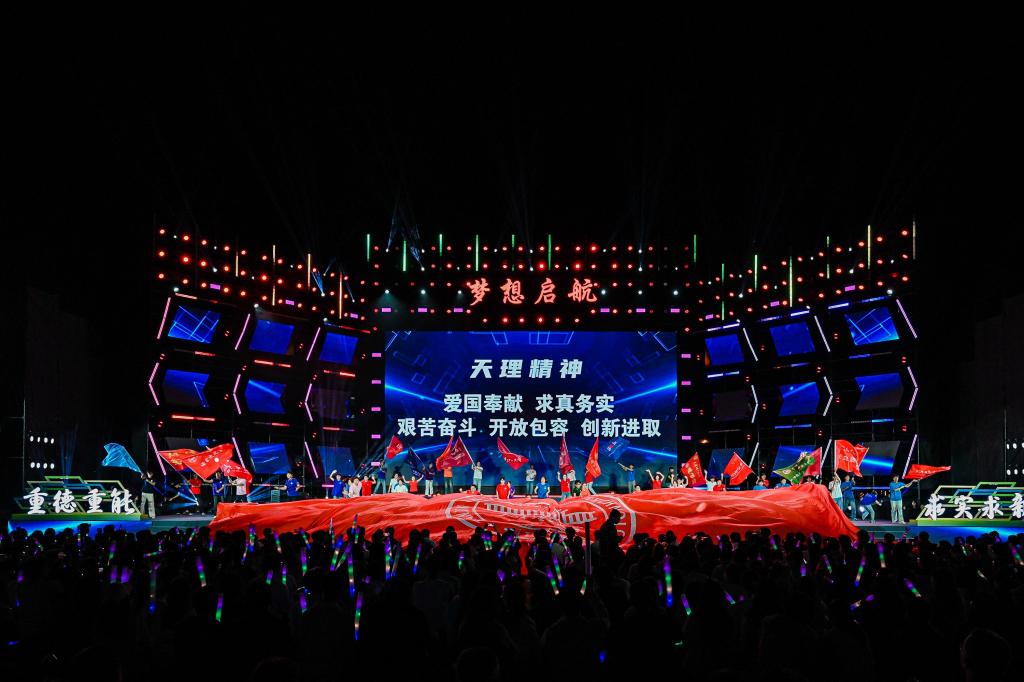 9月17日,“青春正當燃”學校第二十一屆校園文化藝術節開幕式暨“夢想啟航”2025迎新晚會在學校操場舉行。校領導練繼建、許瑞、陳勝勇、葉寧、王鐵、馮驊、蘇榮華出席。相關部門、學院、研究院主要負責人,教師代表、校友代表與2025級全體新生共同觀看這場青春盛宴。中國大學生在線、天理青年等多個平臺同步直播,吸引5萬名觀眾線上同步觀看,共同見證天理新生的啟航時刻。