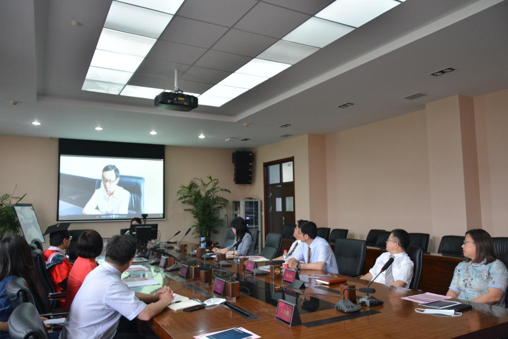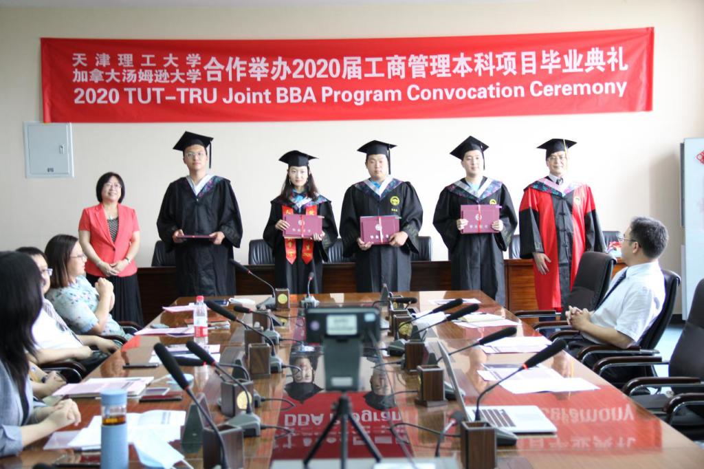 6月24日上午,我校與加拿大湯姆遜大學合作辦學項目工商管理專業2020屆本科畢業線上“云典禮”在管理學院舉行。加拿大湯姆遜大學副校長Baihua Chadwick、商學院院長Michael Henry、國際合作主任Laurie Robinson以及商學院和國際部教師代表共8位外方嘉賓視頻在線參會,管理學院黨委書記張冬梅、院長王京濱以及國際交流處相關負責同志現場參加了畢業典禮。2020屆中外合作項目畢業生共60余人在線參與了這場跨越地域和時空的畢業典禮,會議現場氣氛隆重而熱烈,畢業典禮中外雙方全程英文交流。
