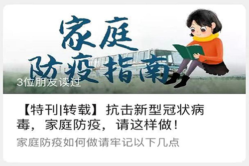 化學化工學院發布“家庭防疫指南”,宣傳疫情防控知識,提高學生重視程度,警惕疫情病毒,做好日常家庭防護工作。