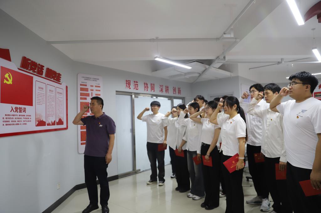 活動伊始,與會領導老師為畢業生黨員送上“政治生日賀卡”。隨后,全體畢業生黨員面向黨旗莊嚴宣誓,重溫入黨誓詞。四位畢業生黨員作為學生代表進行了發言,分享了入黨以來的收獲和對未來的規劃。