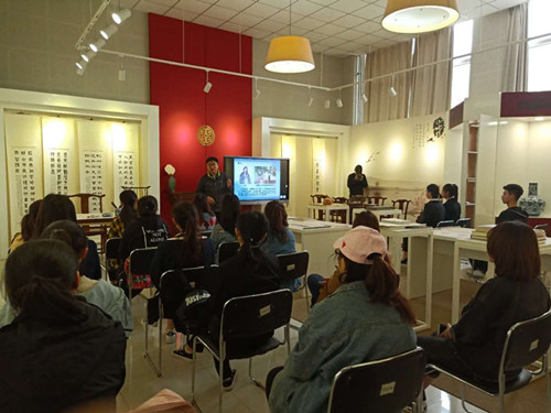 劉老師用專業的理論知識、大量的實物作品勾勒出詩書畫印的內在聯系和知識框架;結合漢字背后的文化故事,帶領同學們領略漢字之美,禮敬中華文化。劉老師講到漢字中蘊含中華五千年的獨特魅力,作為漢語言文化專業的學生要有學好中華文化的信心和傳承發揚中華文化的信念。在平日里自覺開展“學思想、誦經典、樹家風”的學習,堅定文化自信,傳播中國好聲音。