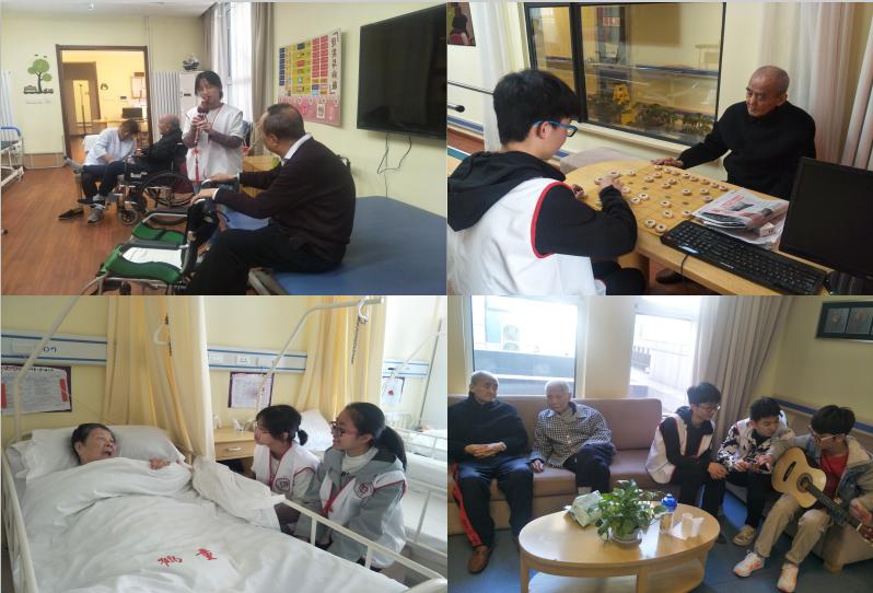 隨后,多才多藝的志愿者還為老人們奉獻了一場精彩的表演,吹葫蘆絲、彈吉他、唱紅歌、講笑話等,養老院充滿了歡快愉悅的氣氛,老人們被志愿者們的朝氣和活力所感染。健談的老爺爺也為我們的小志愿者進上了一堂天津傳統文化普及課,勉勵志愿者們要學好專業知識,多參加社會實踐。