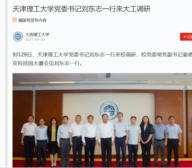 9月29日,我校黨委書記劉東志一行在大連理工大學(xué)調(diào)研,大連理工大學(xué)校黨委常務(wù)副書記姜德學(xué)在科技園大廈會(huì)見劉東志一行。