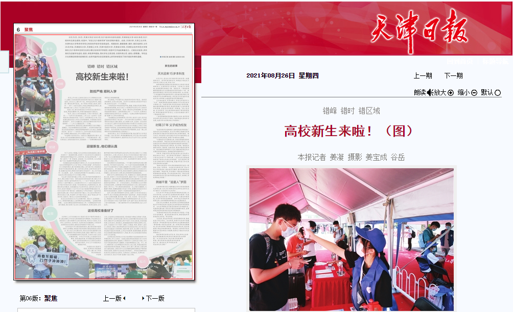 8月25日、26日,天津大學近5000名2021級本科生新生報到,天津財經大學4800余名2021級本科生新生報到,校園中,“歡迎2021級新同學”的標語格外醒目。此前,天津大學、天津工業大學、天津科技大學等多所學校已有其他年級學生陸續返校。根據安排,遵循錯峰、錯時、錯區域原則,8月26日開始,天津醫科大學、天津理工大學、天津中醫藥大學、天津音樂學院、天津職業技術師范大學等高校2021級本科生新生也將分期分批有序開學報到,校園中又洋溢起青春活力。記者走訪發現,多所高校為迎接學生返校、報到,采取多種措施,簡化學生注冊流程,合理布局分區,避免人群聚集。學校全方位保障迎新期間疫情防控,也用豐富多彩的迎新服務讓新同學感受到了新環境的熱情和溫暖。