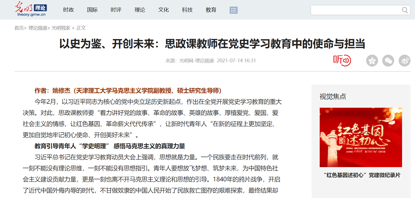 教育引導(dǎo)青年人“學(xué)史增信” 感悟馬克思主義的信仰力量
