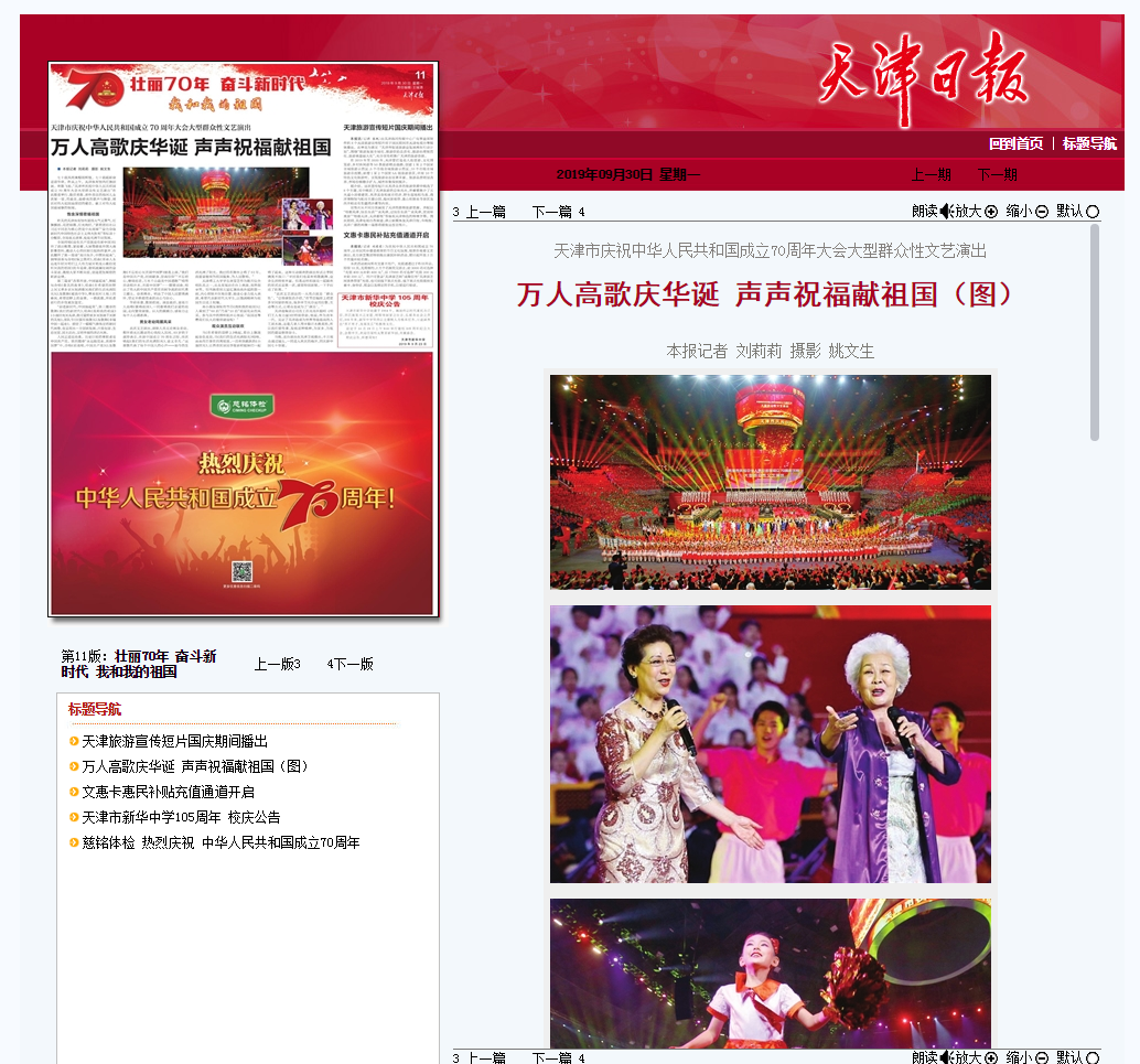 天津市慶祝中華人民共和國成立70周年大會(huì)大型群眾性文藝演出