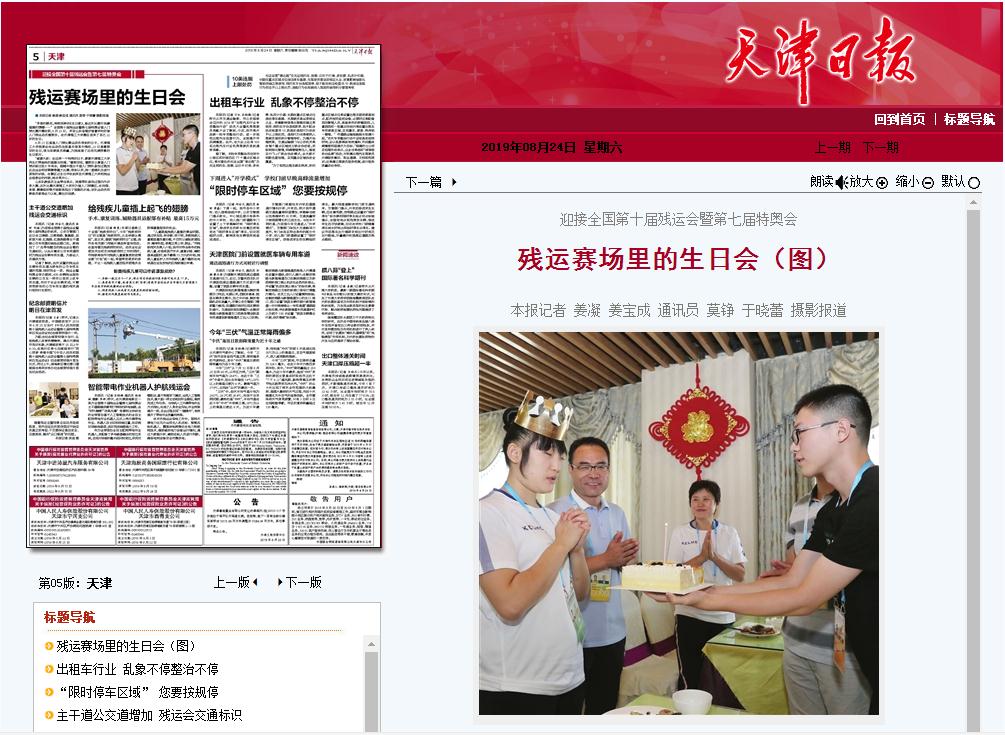 “感謝大家!在這樣一個特殊的日子,謝謝天津理工大學師生們帶給我的溫暖與祝福。”曹振華說。曹振華從事盲人門球訓練已經(jīng)6年有余,跟隨中國女子盲人門球隊參加過雅加達亞運會和世錦賽等重大比賽。報到以來,她一直隨隊伍進行緊張的訓練,在賽區(qū)過生日并收到來自天津理工大學和殘運會組委會的問候,她非常開心。